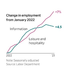 Hospitality companies are reviving their hiring after making pandemic cuts, offsetting slower jobs growth in the technology industry. (WSJ)