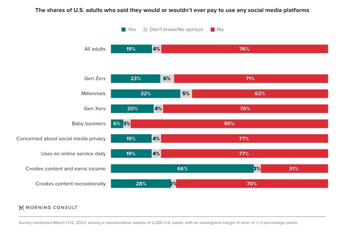 Most Americans won't pay for social media, but those who would pay would want a badge and improved security. (Morning Consult)