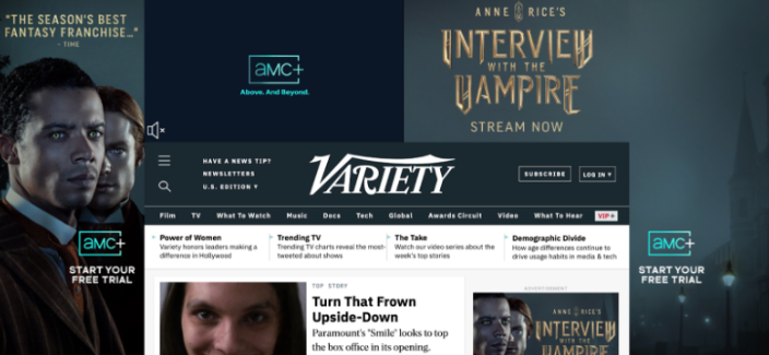 One recent example of a site takeover we deployed is a full roadblock with custom skin, and video units for two highly anticipated shows - one a series premiere, the other a premiere of the final season. By working directly with the publisher, we were able to specify impression share per title, ensuring the site’s audience would see creative for both shows.
