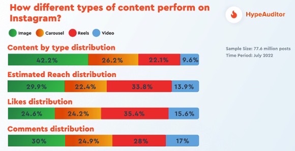Reels are generating the most reach on Instagram, but the most commonly posted type of content remains image posts, at 42% of all posts. (Social Media Today)