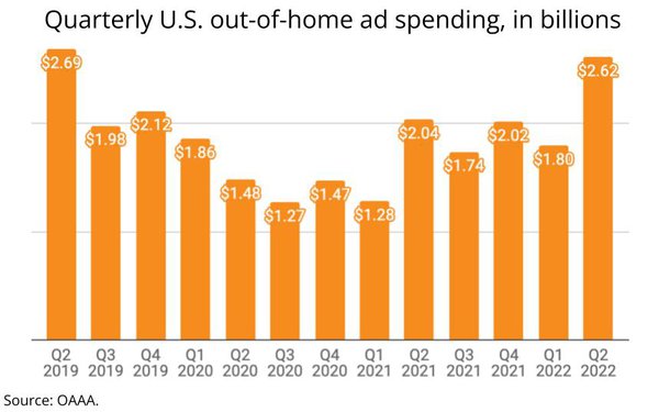 US OOH ad spending totaled $2.62B in Q2, just behind the record $2.69B set in Q2 2019. (Media Post)