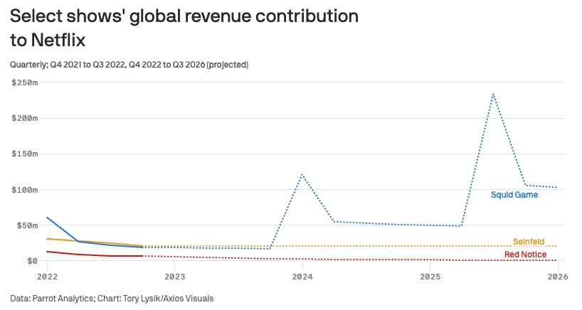 Squid Game is on track to become Netflix's most valuable title if it adds two more seasons. (Axios)