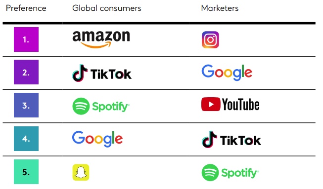 Amazon replaced TikTok as global consumers’ favorite ad environment. Marketers, however, prefer to advertise on Instagram the most. (Media Leader)