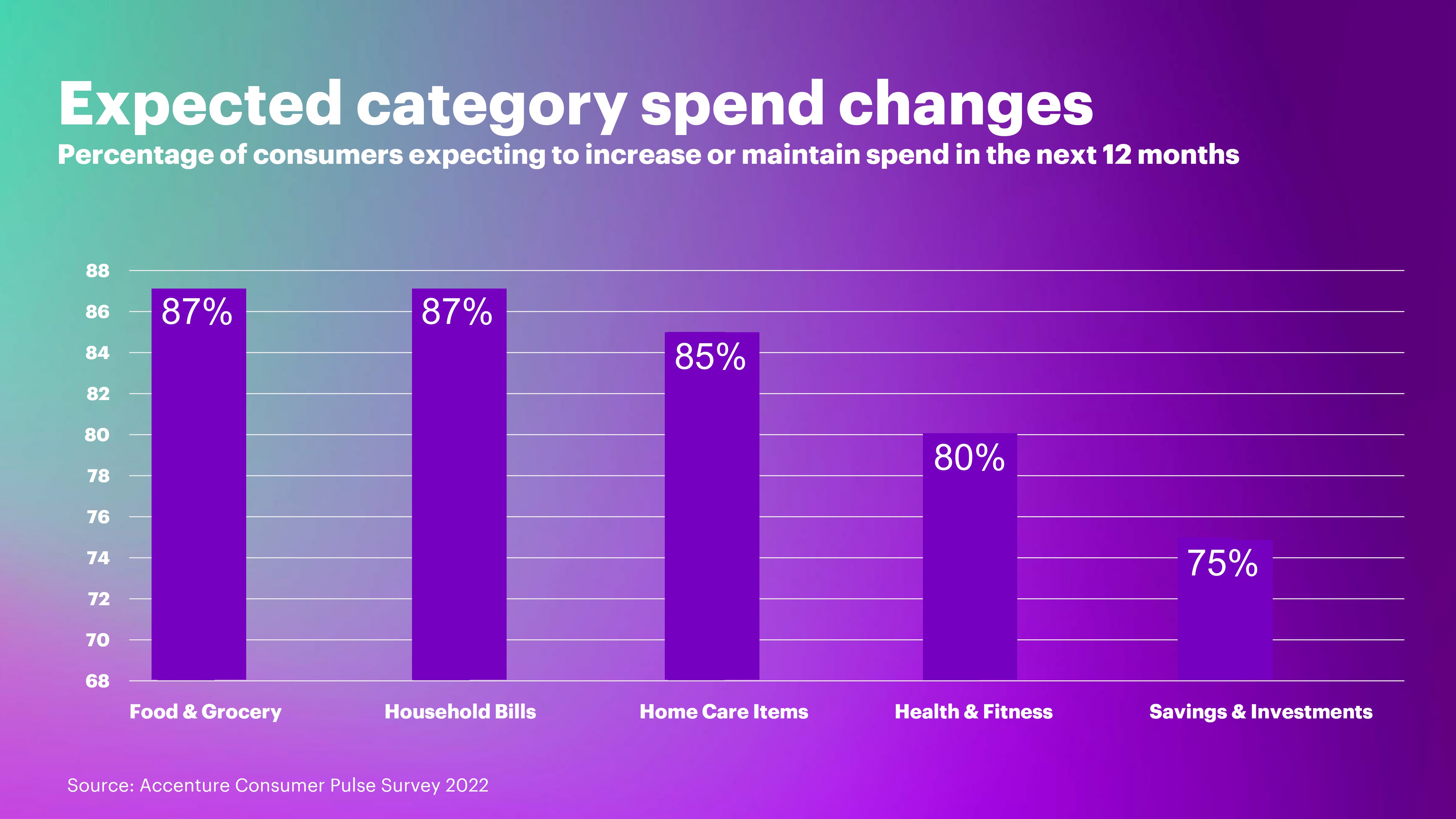 Even though two-thirds feel squeezed financially, 80% of consumers globally intend to maintain or increase their spend on health and fitness. (Accenture)